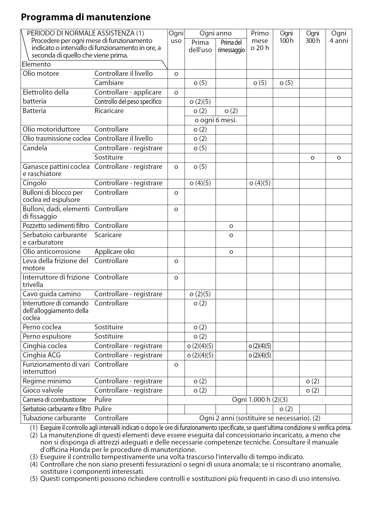 Ispezione e manutenzione inadeguate, manutenzione errata o mancata riparazione dei prodotti per volontà di persone diverse da un Tecnico dell'assistenza possono causare il malfunzionamento del prodotto e provocare lesioni gravi o la morte. Contattare il proprio rivenditore Honda oppure il concessionario o l'officina di manutenzione di prodotti Honda più vicini in merito alla manutenzione effettuata da persone diverse da un tecnico dell'assistenza.
