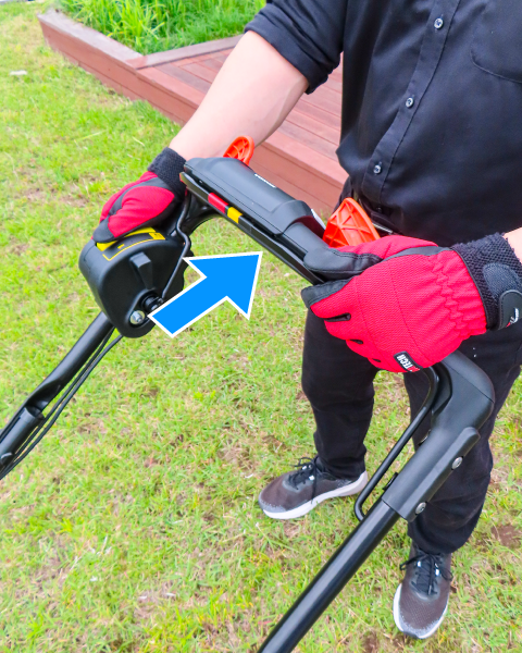 Hold blade control lever against the handlebar.
