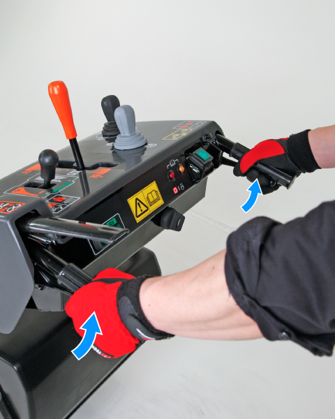 Drücken Sie den rechten und den linken Lenkhebel gleichzeitig 3 Sekunden lang.
