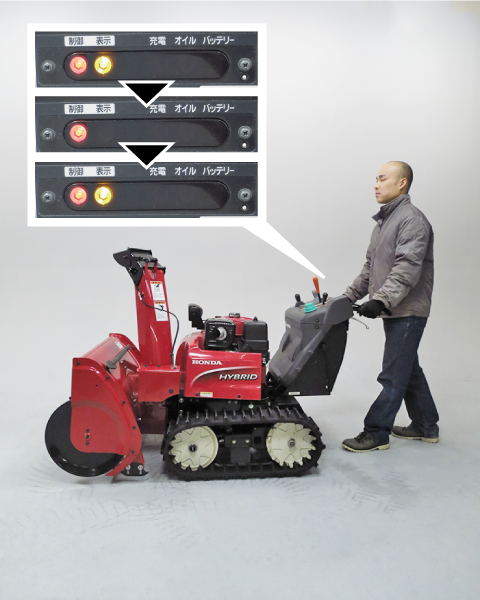 Check the number of times the warning indicator (orange) flashes and contact the dealer where you purchased the snow blower.