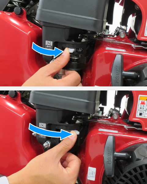 チョークレバーを「始動」の位置にしてエンジンを始動し、始動後、徐々に「運転」の位置に戻す
