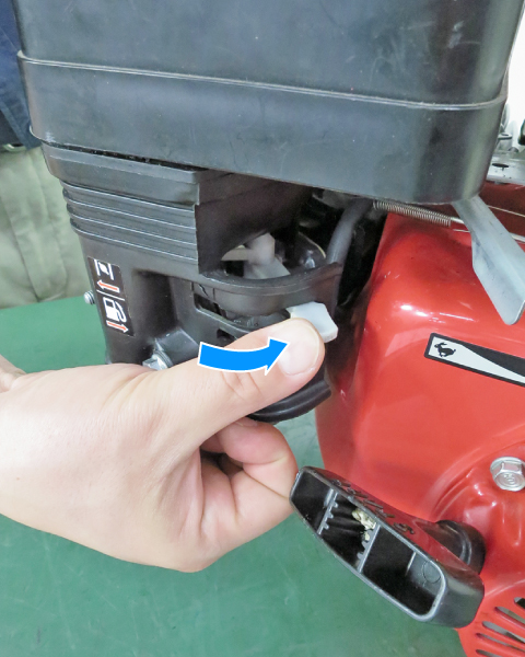 エンジンが暖まっている場合以外は、チョークレバーを閉の位置に動かしてください。